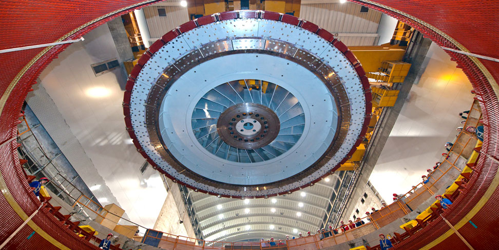 溪洛渡水电站最后一台机组转子成功吊装就位