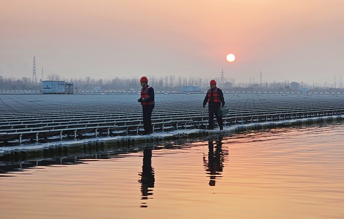 入冬以来,安徽淮南峡潘光伏电站运维人员积极做好水面漂浮式光伏电站巡检工作。冬季水面较为寒冷,运维人员穿戴好防护套装,准备充足工器具后在水面进行汇流箱、浮体检修,主要检修设备稳定性、浮体稳固性等。高质量、常态化巡检、精准做好隐患排查是筑牢水面漂浮式光伏电站安全稳定运行的基础。场站将持续开展各项培训、检修工作,确保冬季电站高效运行。