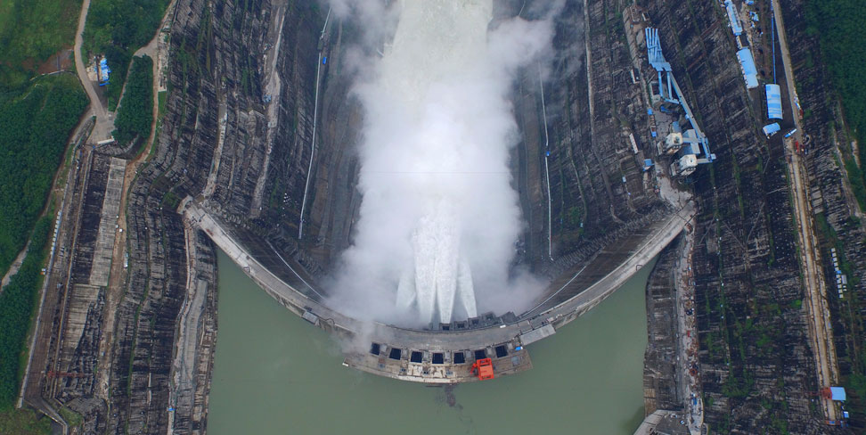 鸟瞰溪洛渡水电站泄洪