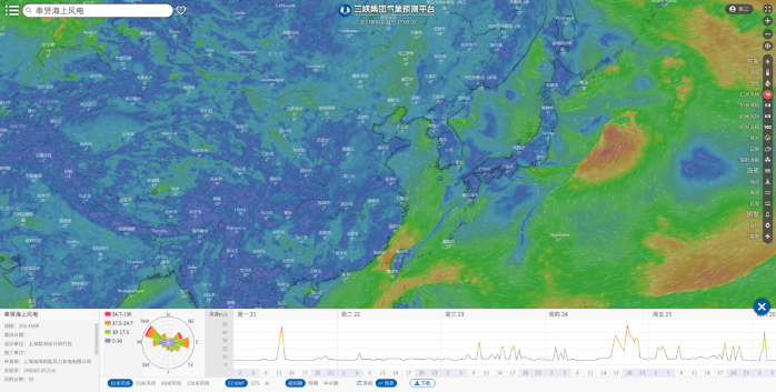 通过深入到海上风电场一线调研,从项目选址、建设到运维,气象团队全方位摸清了风电场项目各个生命周期的气象需求。在设计阶段,气象服务需提供某区域的多年气候特征等信息,为风资源的评估和风电场选址提供参考依据;在建设阶段,需时刻注意天气的变化,避免极端天气过程引发安全事故及工程质量问题;在运维阶段,精准的气象数据可以为风光功率预测提供准确驱动数据,可靠的人工智能算法和数值模型可以提升功率预测精度,降低新能源场站运维成本,增加运行效益,为风电现货交易提供策略基础。