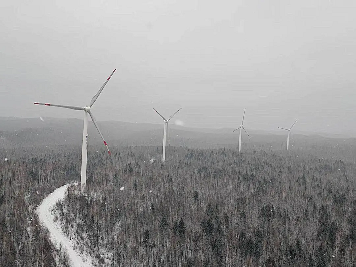 这片被风雪包裹的林海之上,33台巨大的风力发电机缓缓转动,化作点亮千家万户的温暖。