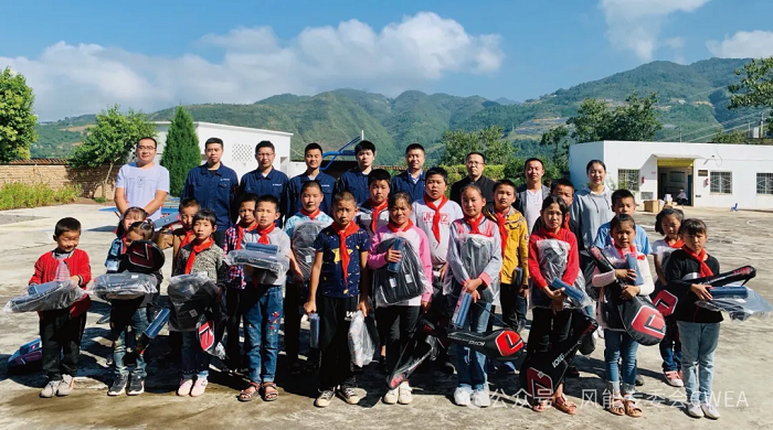 金阳索玛花开,巨大的风电机组屹立于山头,将原本贫瘠的荒山变成了助力乡村振兴的“金山银山”。“大风车”每年可“吹出”约4。19亿千瓦时的清洁能源,每年可为当地政府增加2000多万元的税收,建设期创造出500多个就业岗位。六一儿童节期间,金阳风电场的现场运维团队为偏远学校的学生们发放教学物资和生活用品,青年志愿者们向小朋友们介绍风电机组模型,小朋友们被“大风车”吹出的清洁能源深深吸引,“小脑袋们”围着志愿者老师叽叽喳喳好奇地询问风力发电的种种细节。